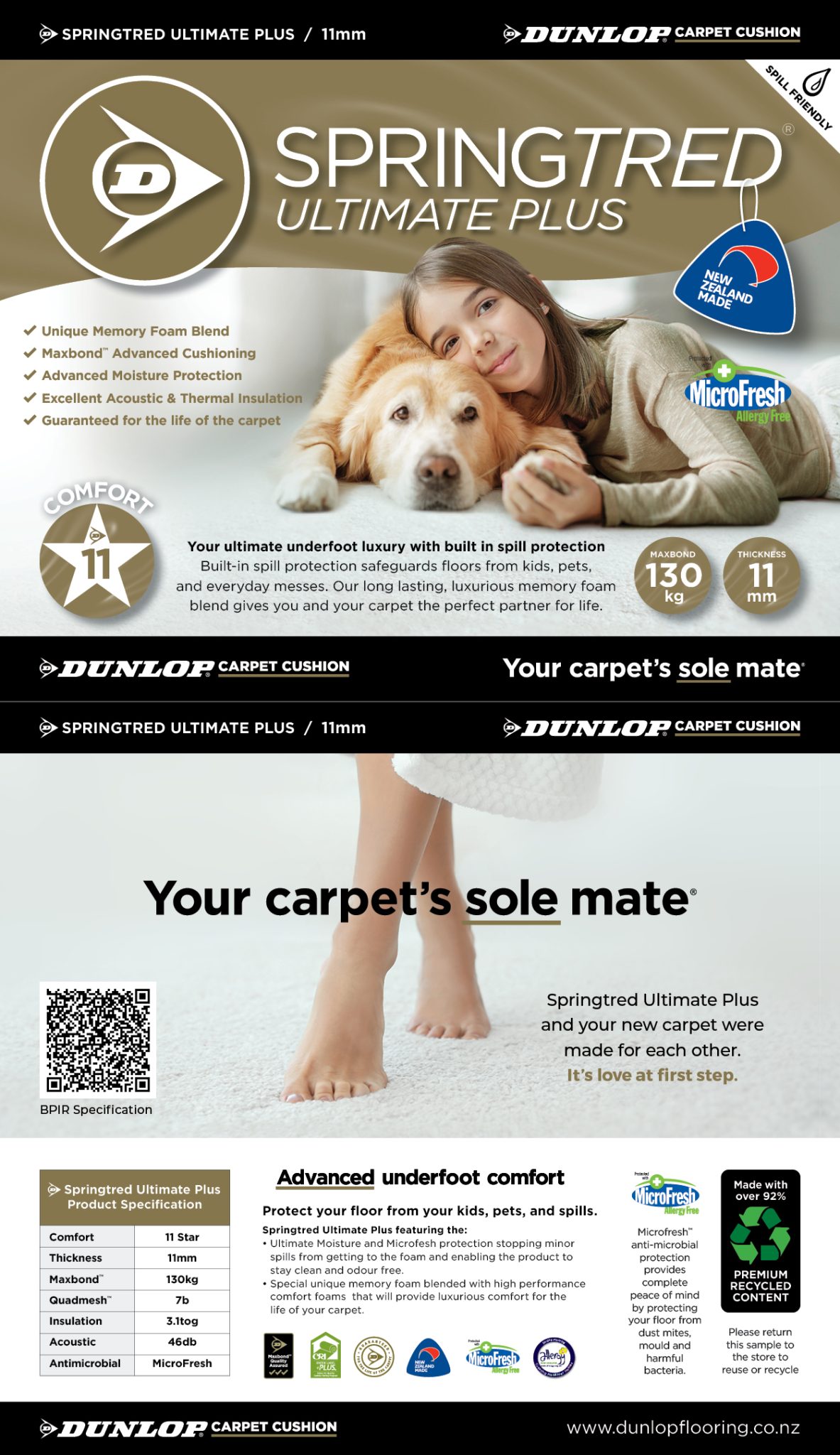 Super Plush. Featuring Dunlop’s MaxbondTM advanced cushioning system, this high density extra thick carpet cushion provides plush underfoot comfort, great insulating and acoustic properties, and enhances the life of your carpet.
